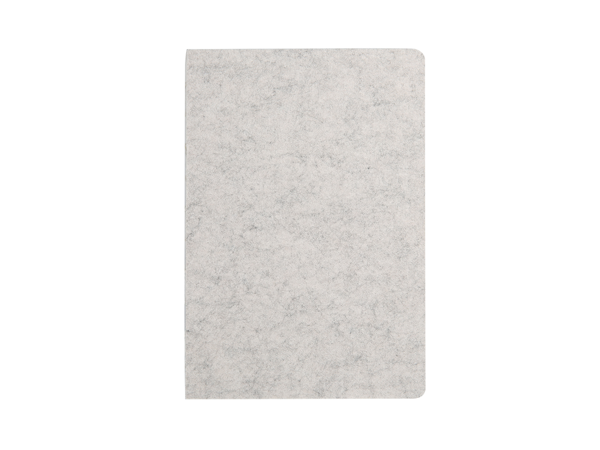 A5 Size notebook in RPET felt material cover and 96sheets, 80GSM recycled paper sheets. Product Size: 14.2x21cm. Packaging: Kraft Paper Sleeve