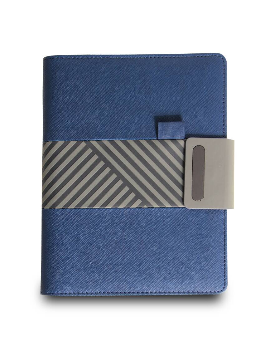 Improved Trendy Organizer with A5 notebook in PU Material. Has unique and signature design in the middle which can be a business card holder and elastic pen loop above it. Got a magnet closure with elongated metal plate for branding. Inside has mobile stand, elastic pen loop, business card holder, 2 elastics to hold accessories and cables. Has a notebook with 56 sheets of cream lined paper and 8 sheets of blank paper. Product Size: 22.5x17x3.5cm Packaging: Paper Box